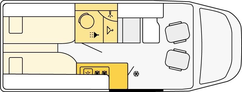 - Ausstellfenster in Fahrtrichtung hinten links (inkl. Verdunklungsrollo und Fliegenschutz) außer CV 600 BB