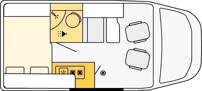 - Ausstellfenster in Fahrtrichtung hinten links (inkl. Verdunklungsrollo und Fliegenschutz) außer CV 600 BB