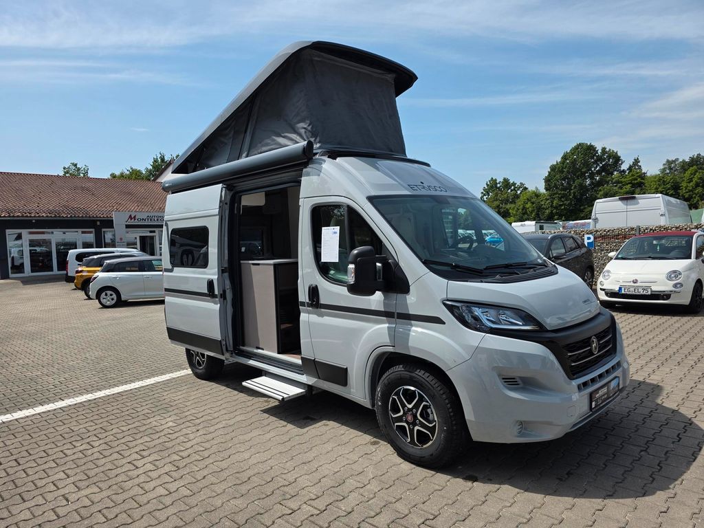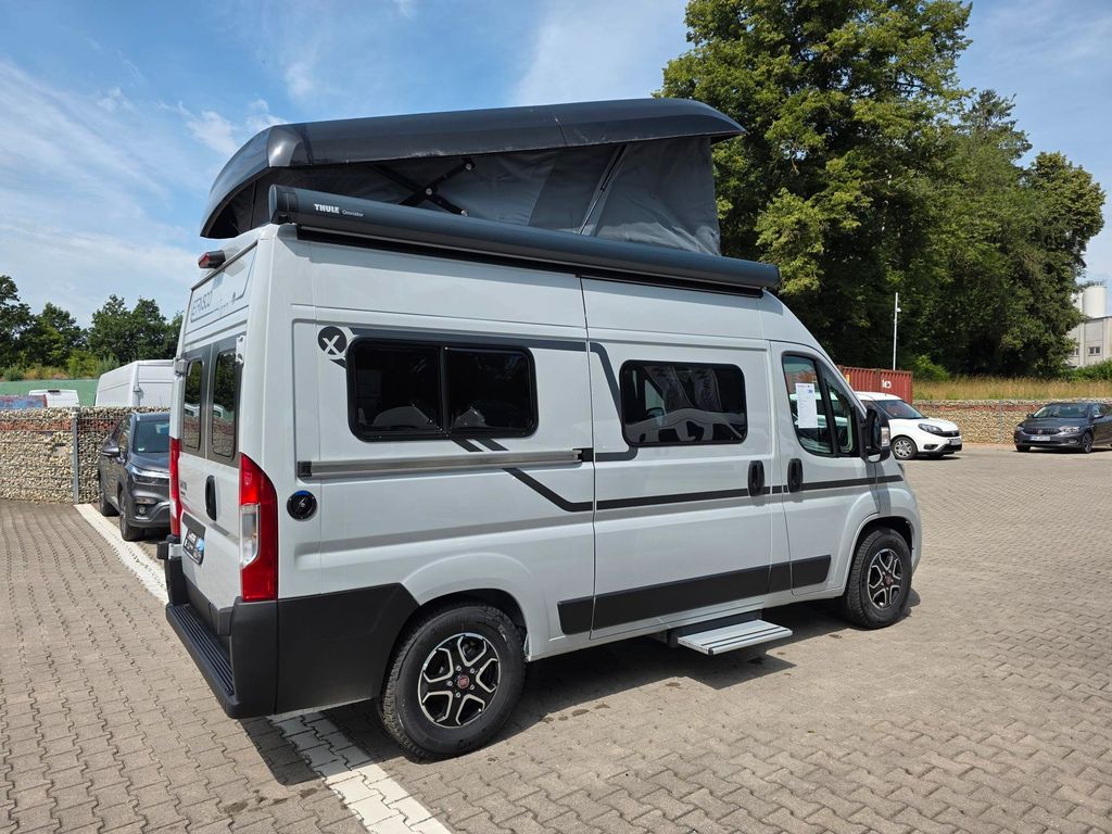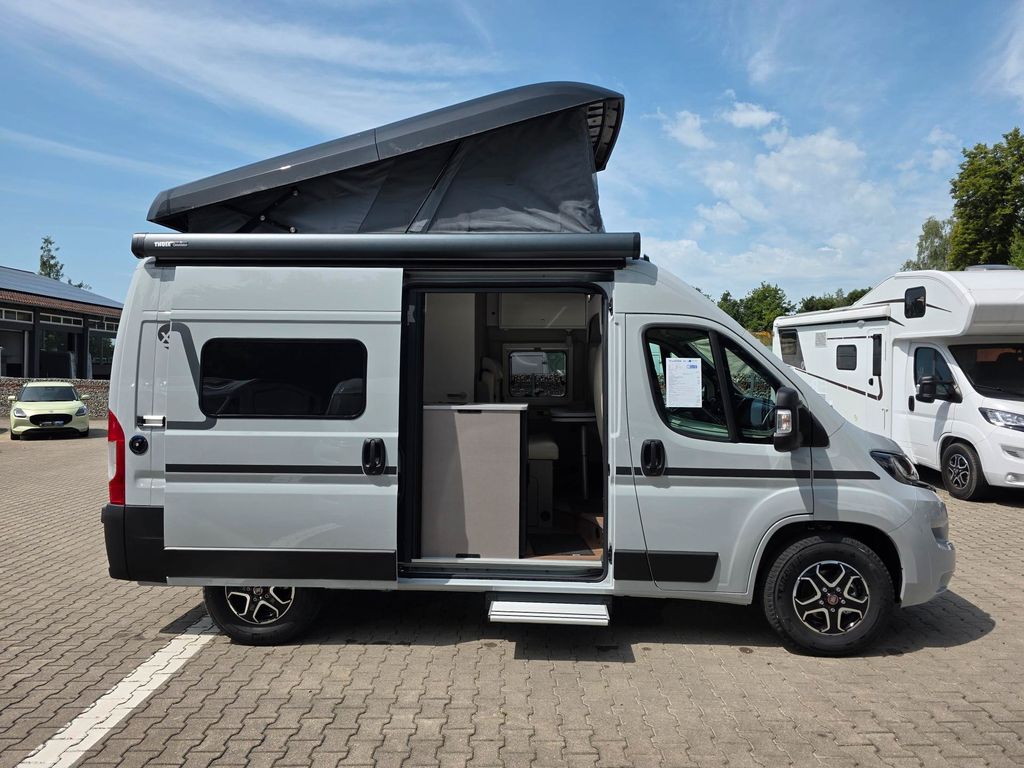 Dachausführung: Aufstelldach (Hub-/Schlafdach), Außentemperaturanzeige, Fiat-Chassis, Gebläseheizung, Insektenschutztür, Sitze: Pilotensitz (drehbar), Bettenart: Querbett, Zustand: unfallfrei