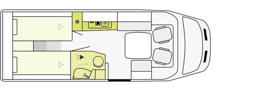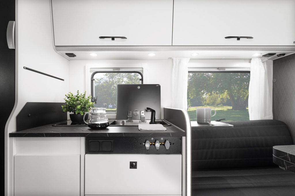 - Frischwassertankkapazität 110l, Abwassertank 100l (V 5.9 DF: 95l)