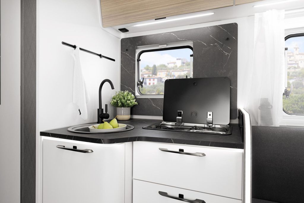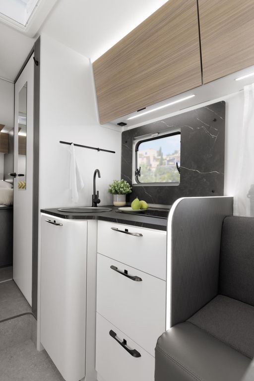 - LED-Beleuchtung integriert unter den Dachschränken