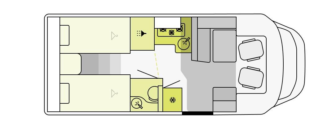 - Frischwassertankkapazität 110 l, Abwassertank 90 l
