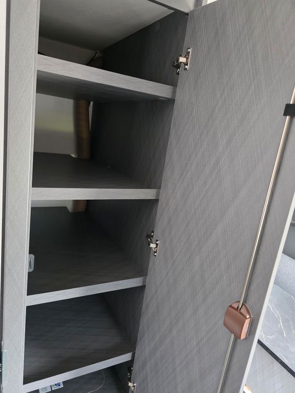 2. Außenstauraumklappe (Größe modellabhängig), Fliegengittertür, Garderobenhaken, Steckdose im Küchenblock, Steckdose in der Garage, Holzlattenrost in der Dusche