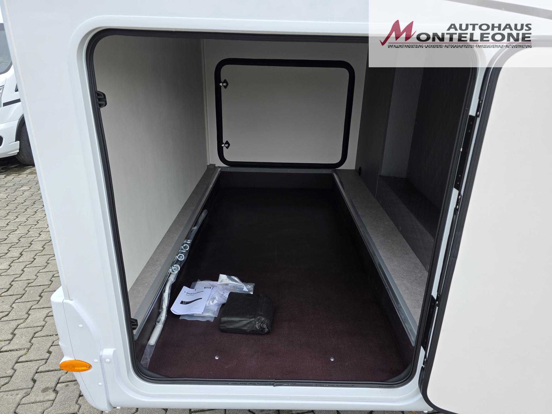 • Großzügige Heckgarage mit Rahmenabsenkung, Verzurrösen und Innenbeleuchtung (modellabhängig) vorhanden