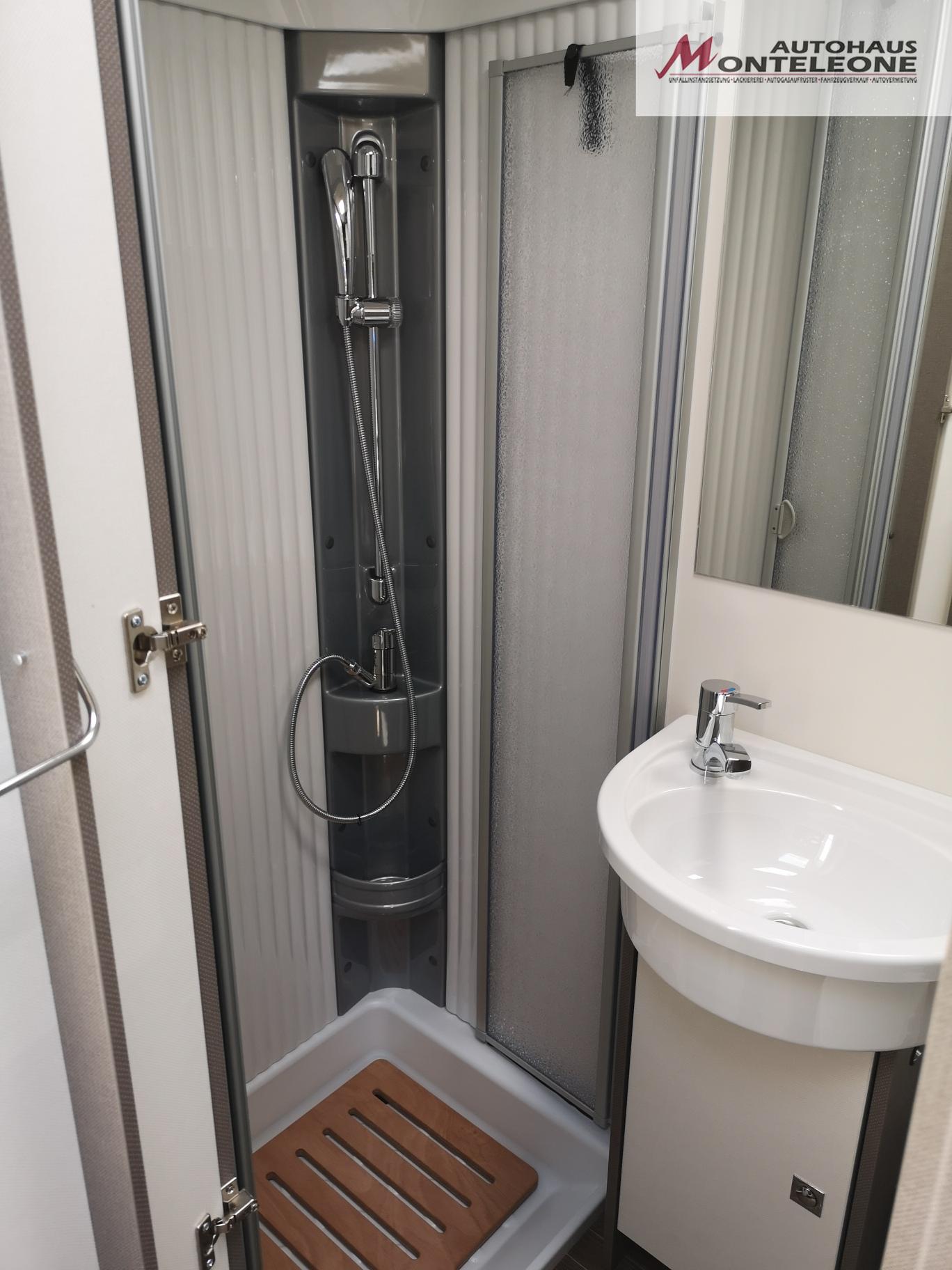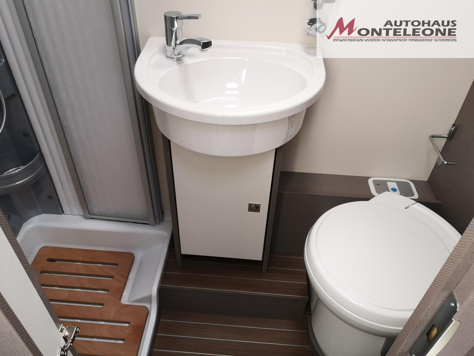 • Kassettentoilette mit elektrischer Pumpe und drehbarem Sitz vorhanden