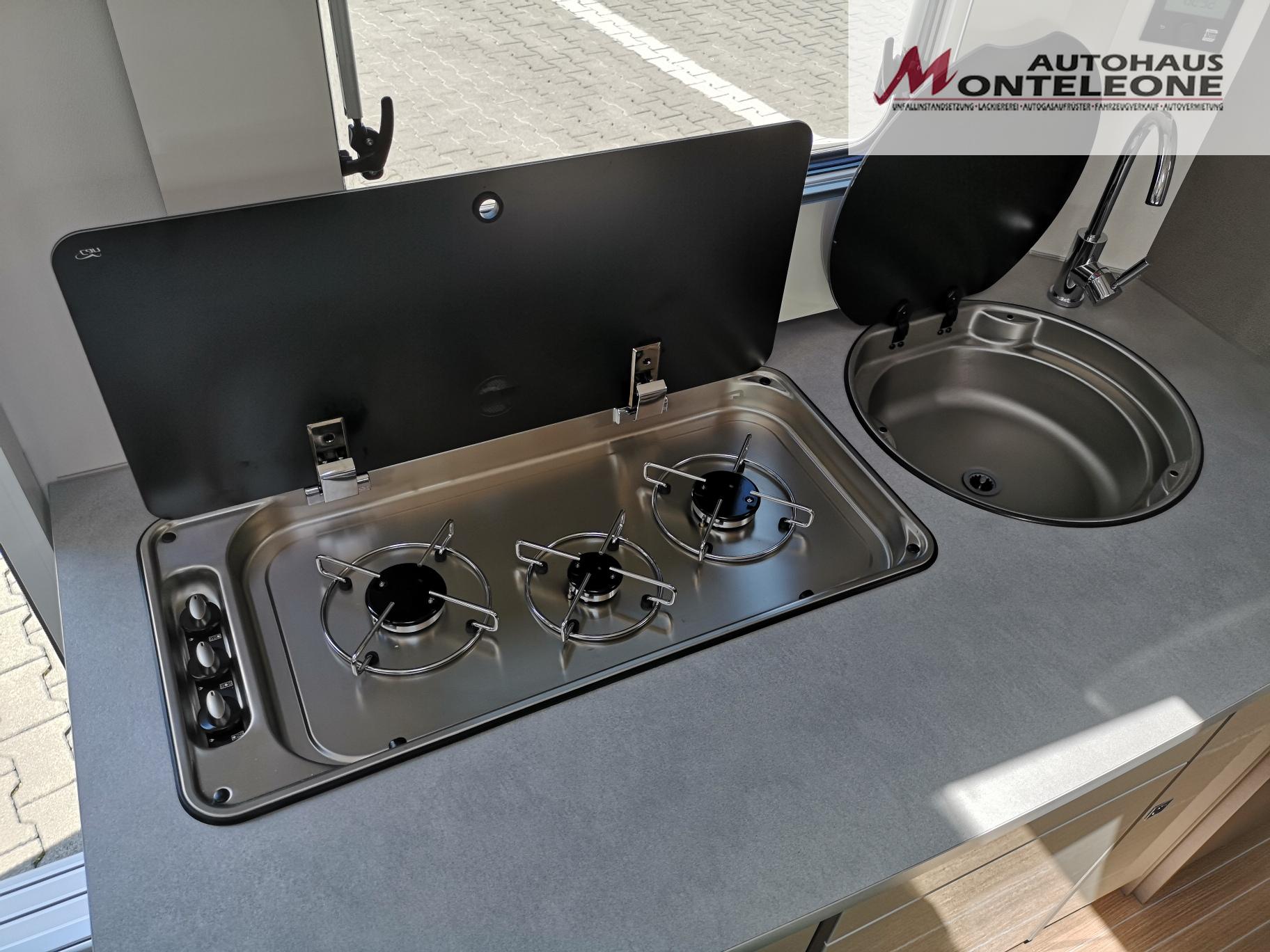 • Drei-Flammkocher mit 12 V Zündung und Glasabdeckung vorhanden