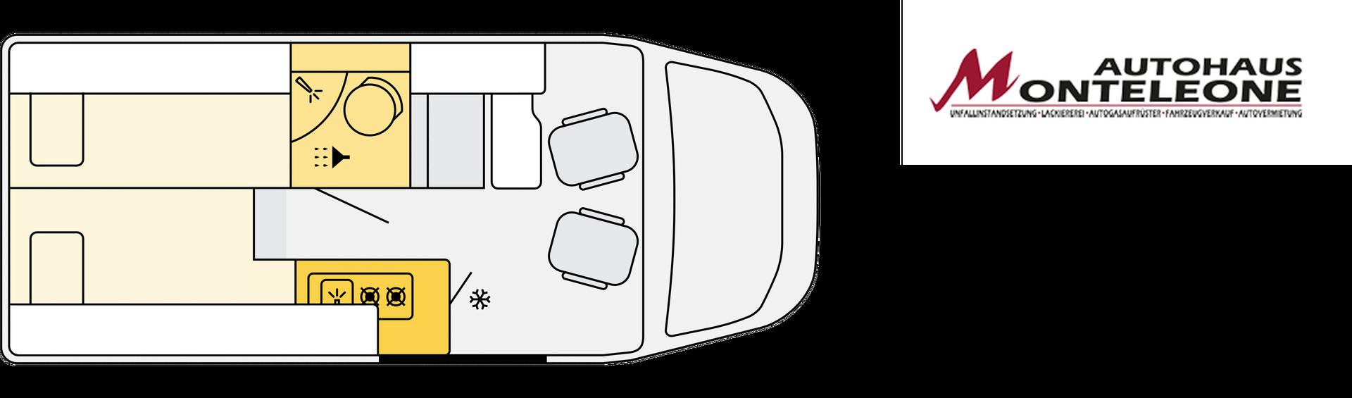 • 1027 iCONiC Line mit alternativen Wohnwelt beinhaltet: iCONiC Line Abklebung innen und außen, Dachschrankklappen in Sella Light vorhanden