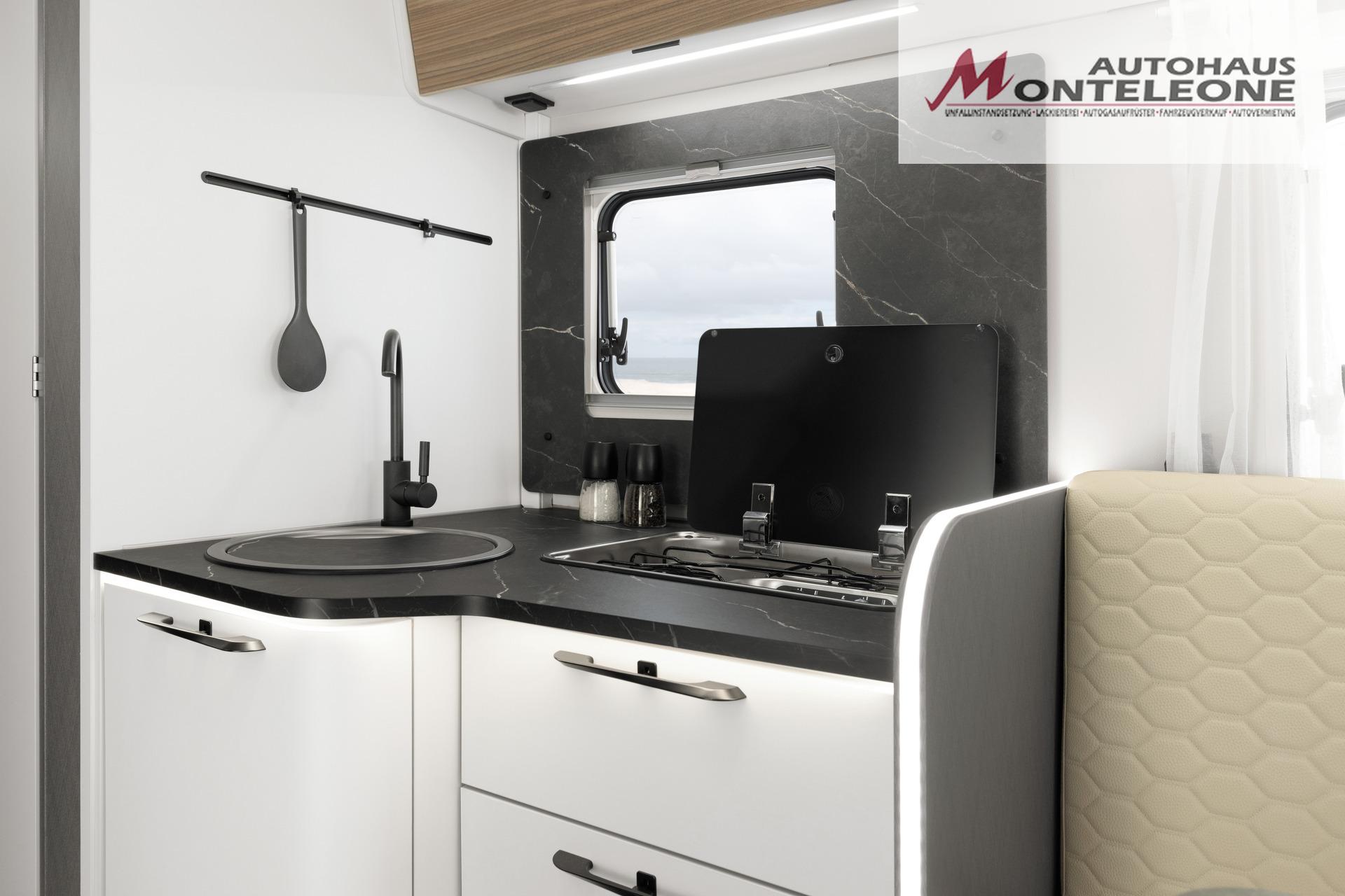 • Zwei-Flammkocher mit 12 V Zündung und Glasabdeckung6) vorhanden
