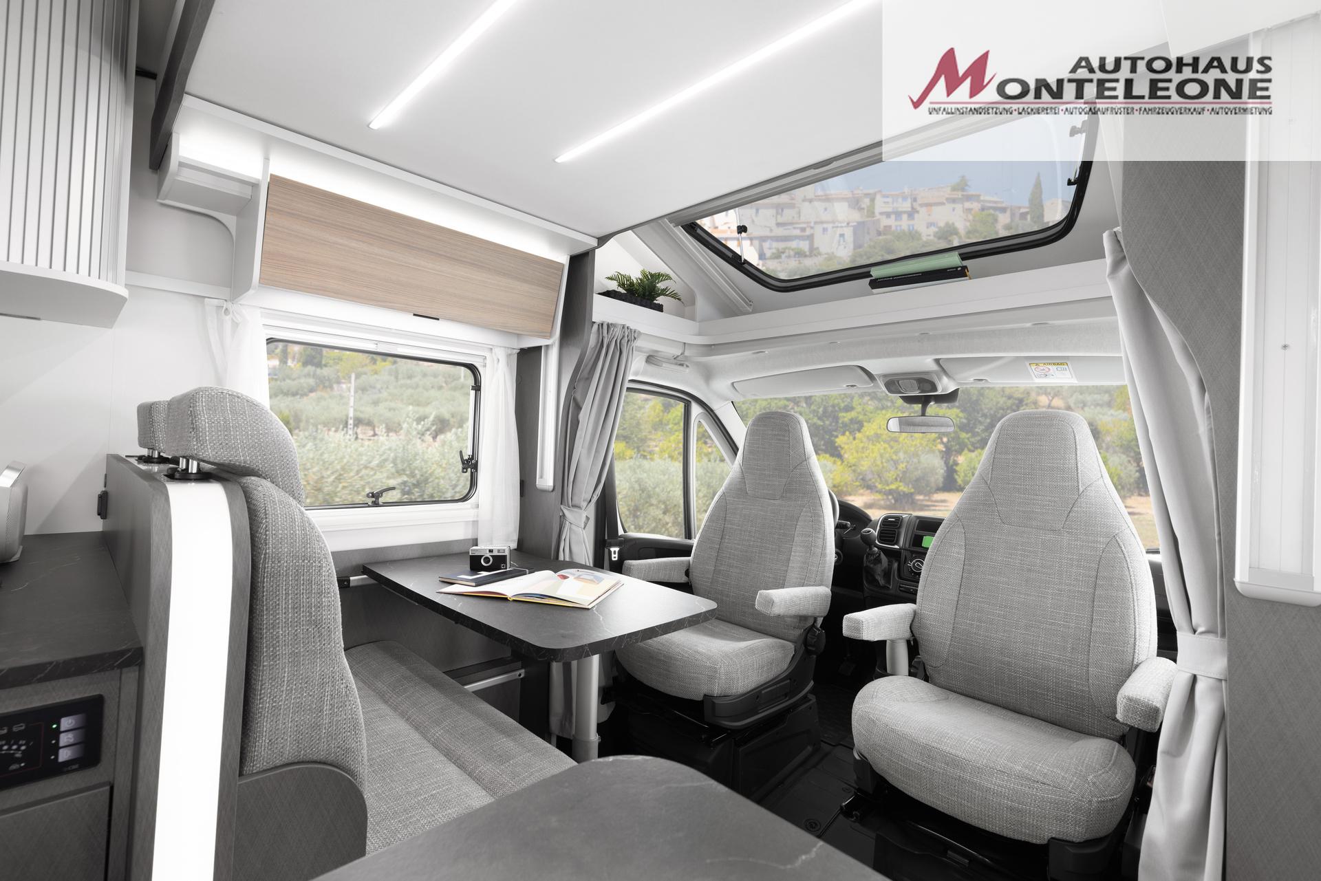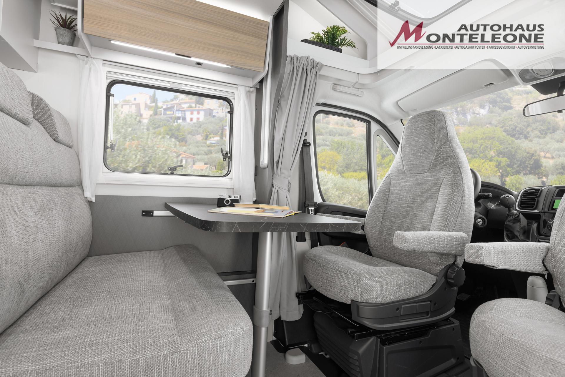 • Fahrer-|Beifahrersitz drehbar in Wohnraumstoff mit Doppelarmlehnen vorhanden