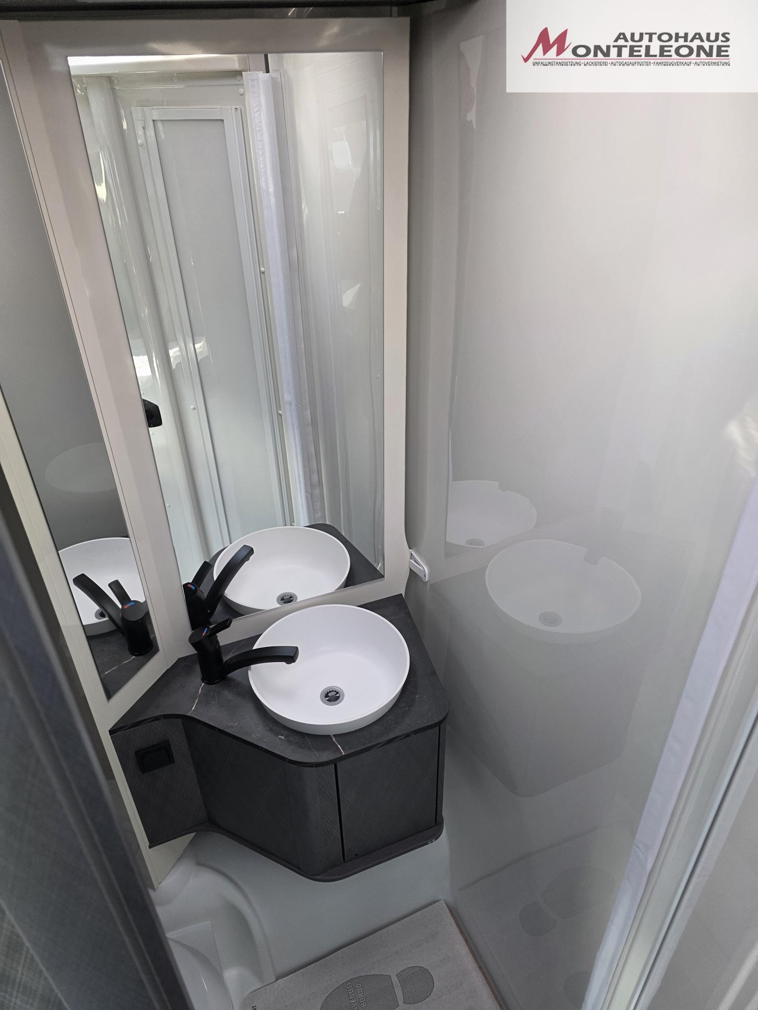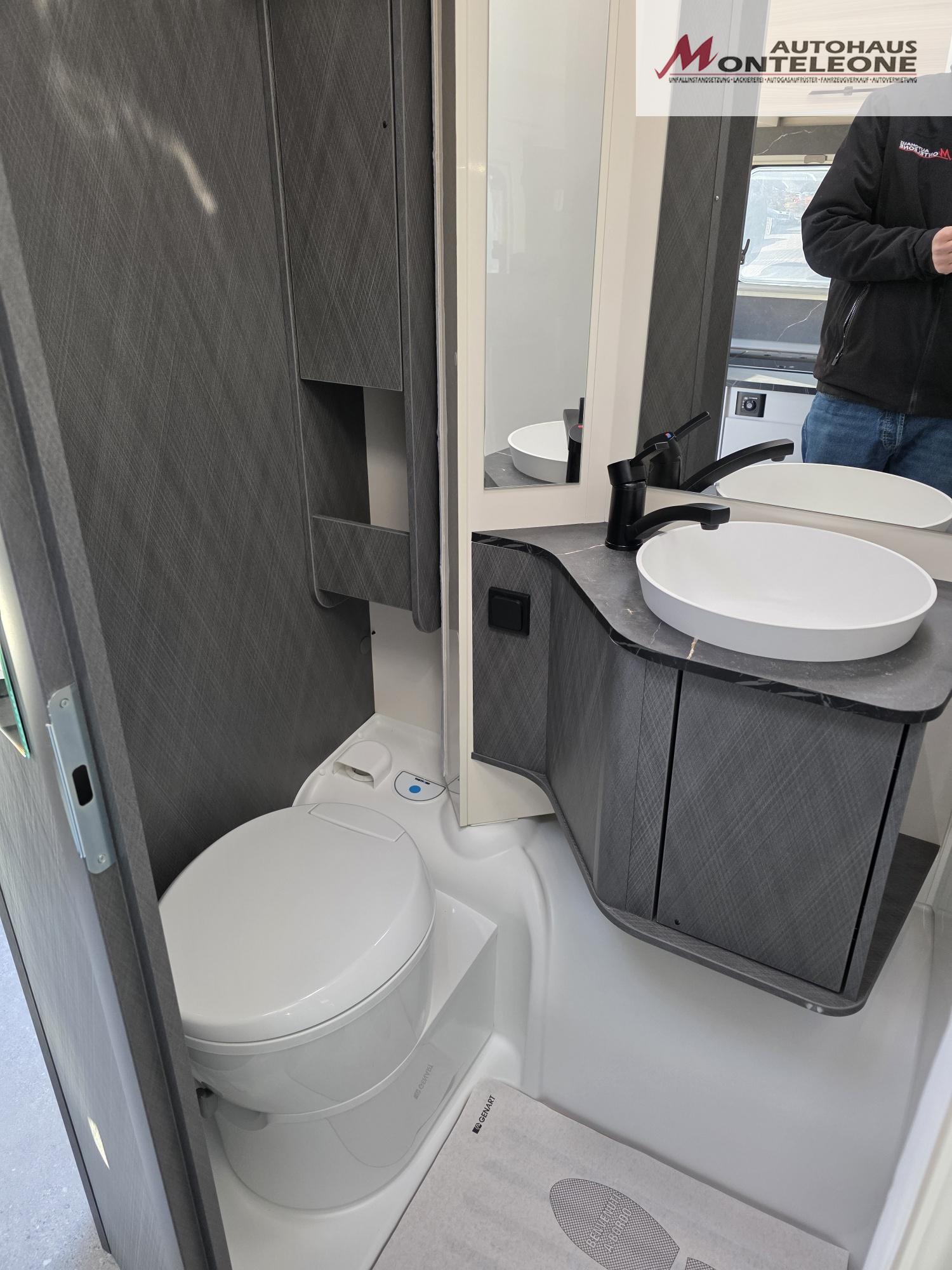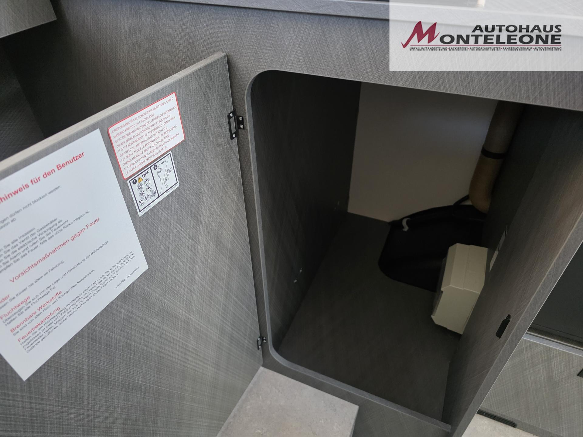 • Kassettentoilette mit elektrischer Pumpe und drehbarem Sitz vorhanden