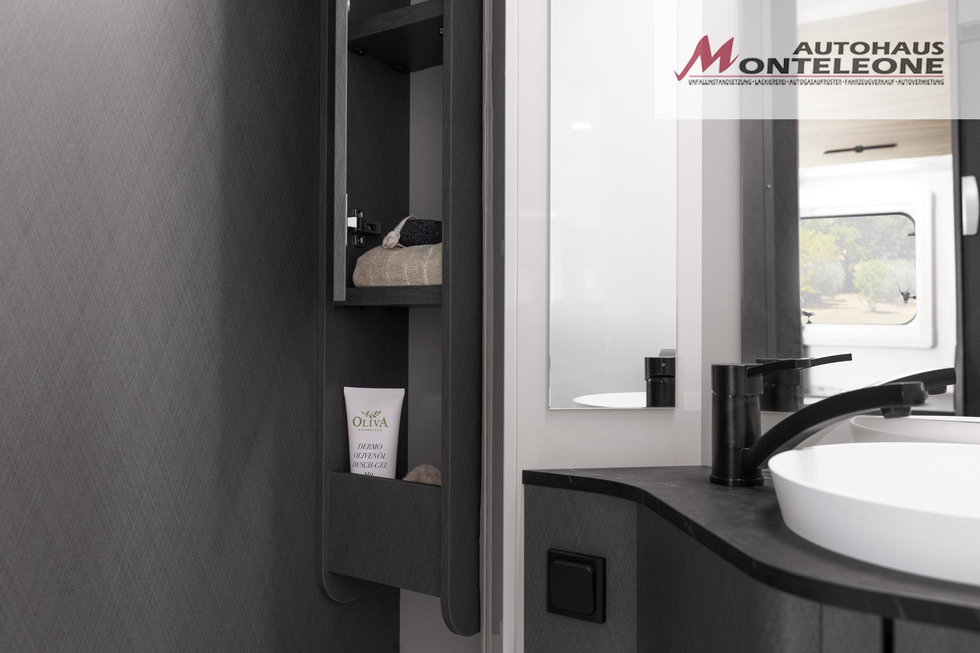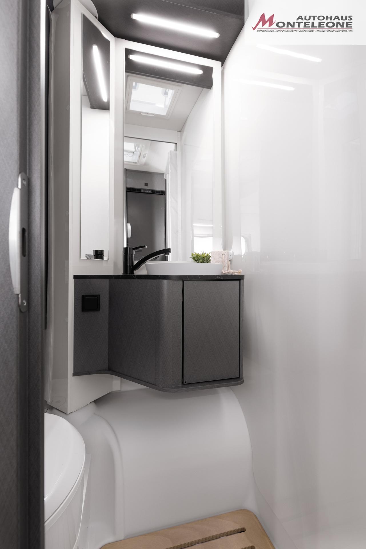 • Kassettentoilette mit elektrischer Pumpe und drehbarem Sitz vorhanden