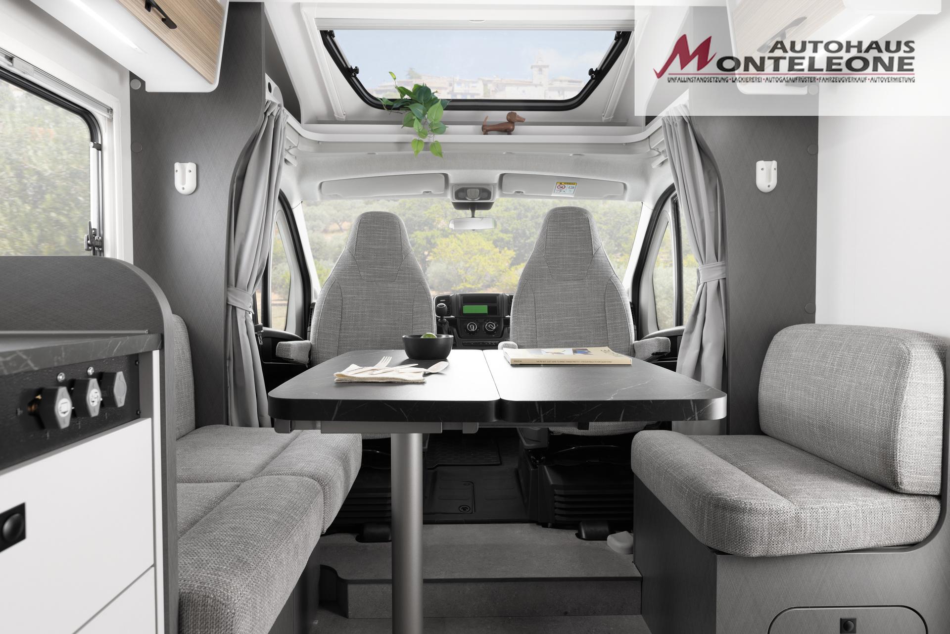 • Fahrer-|Beifahrersitz drehbar in Wohnraumstoff mit Doppelarmlehnen4) vorhanden