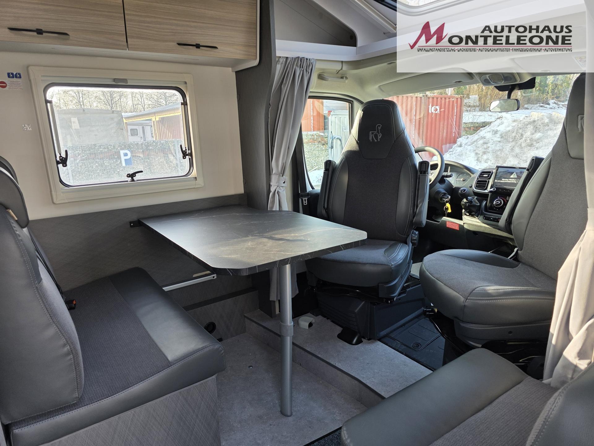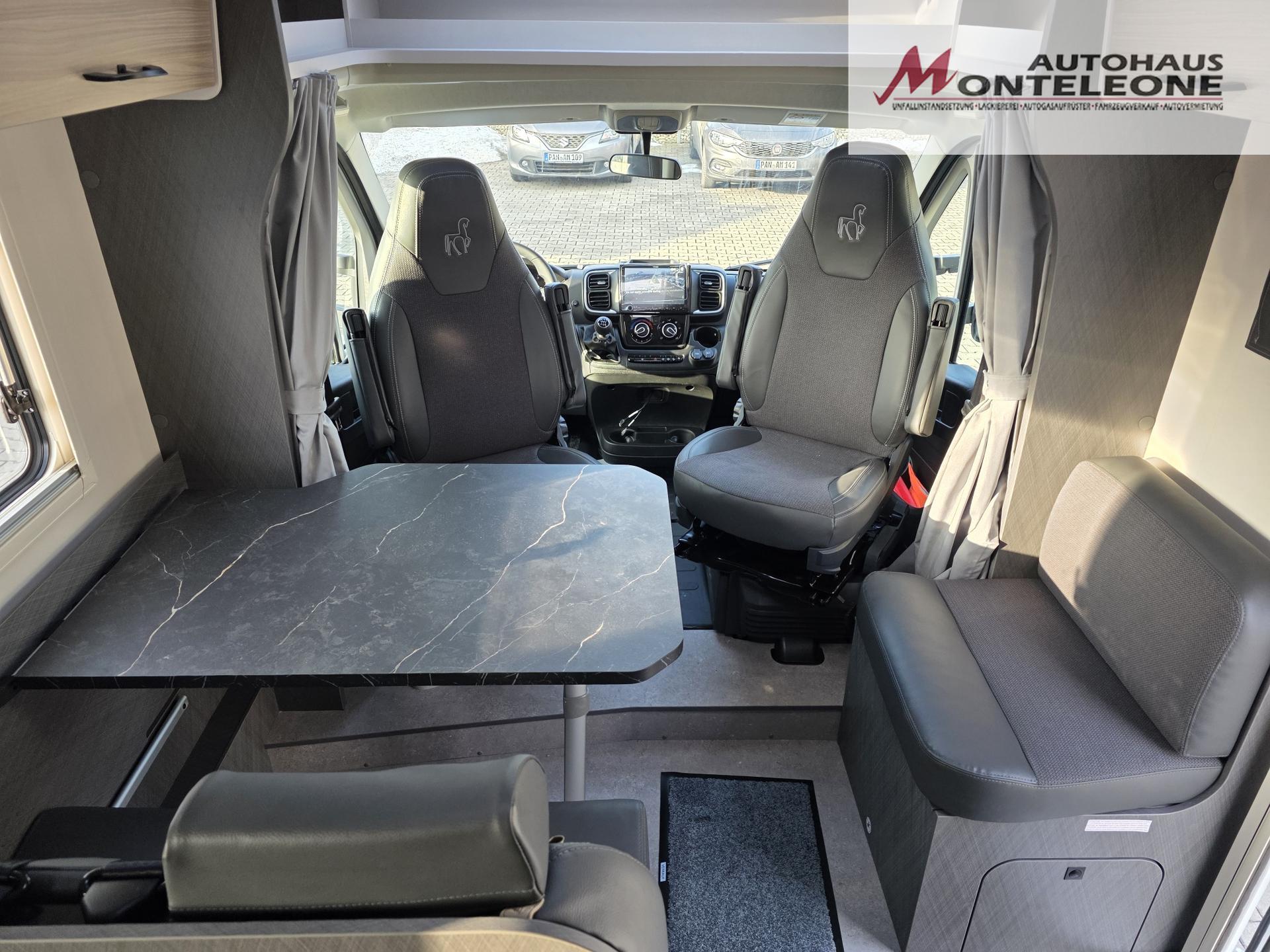 • Fahrer-|Beifahrersitz drehbar in Wohnraumstoff mit Doppelarmlehnen4) vorhanden