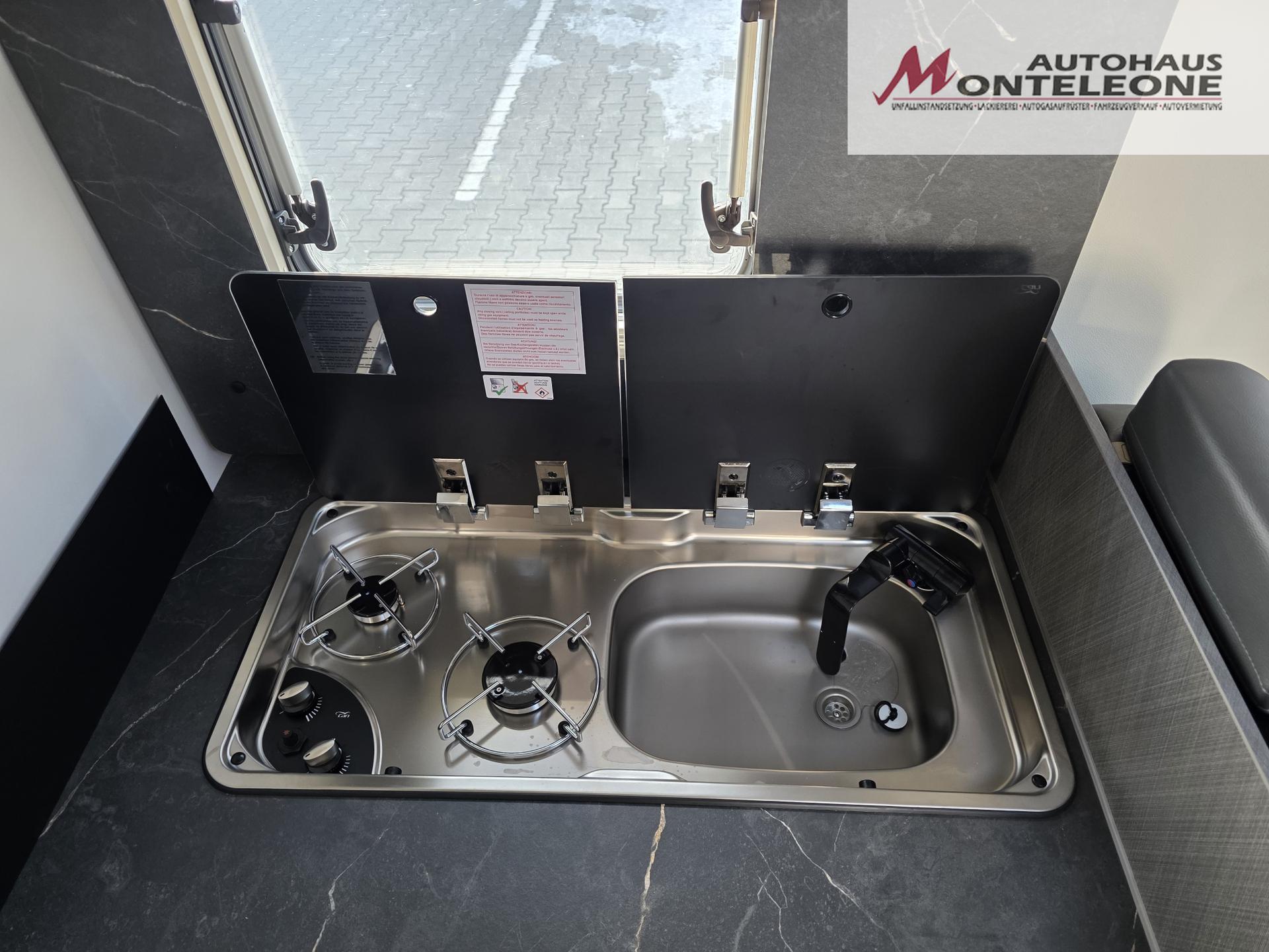 • Zwei-Flammkocher mit 12 V Zündung und Glasabdeckung vorhanden