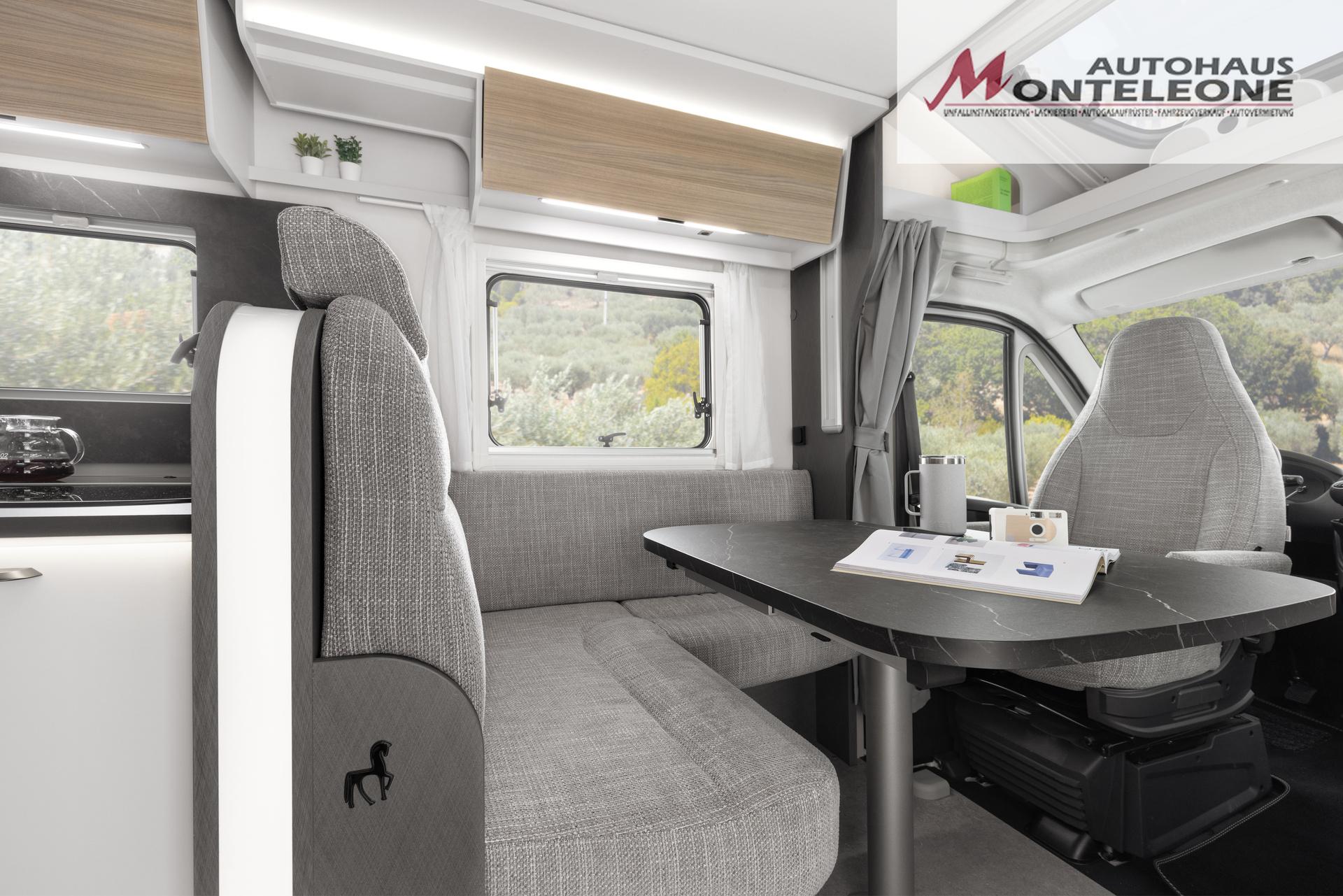 • Fahrer-|Beifahrersitz drehbar in Wohnraumstoff mit Doppelarmlehnen vorhanden