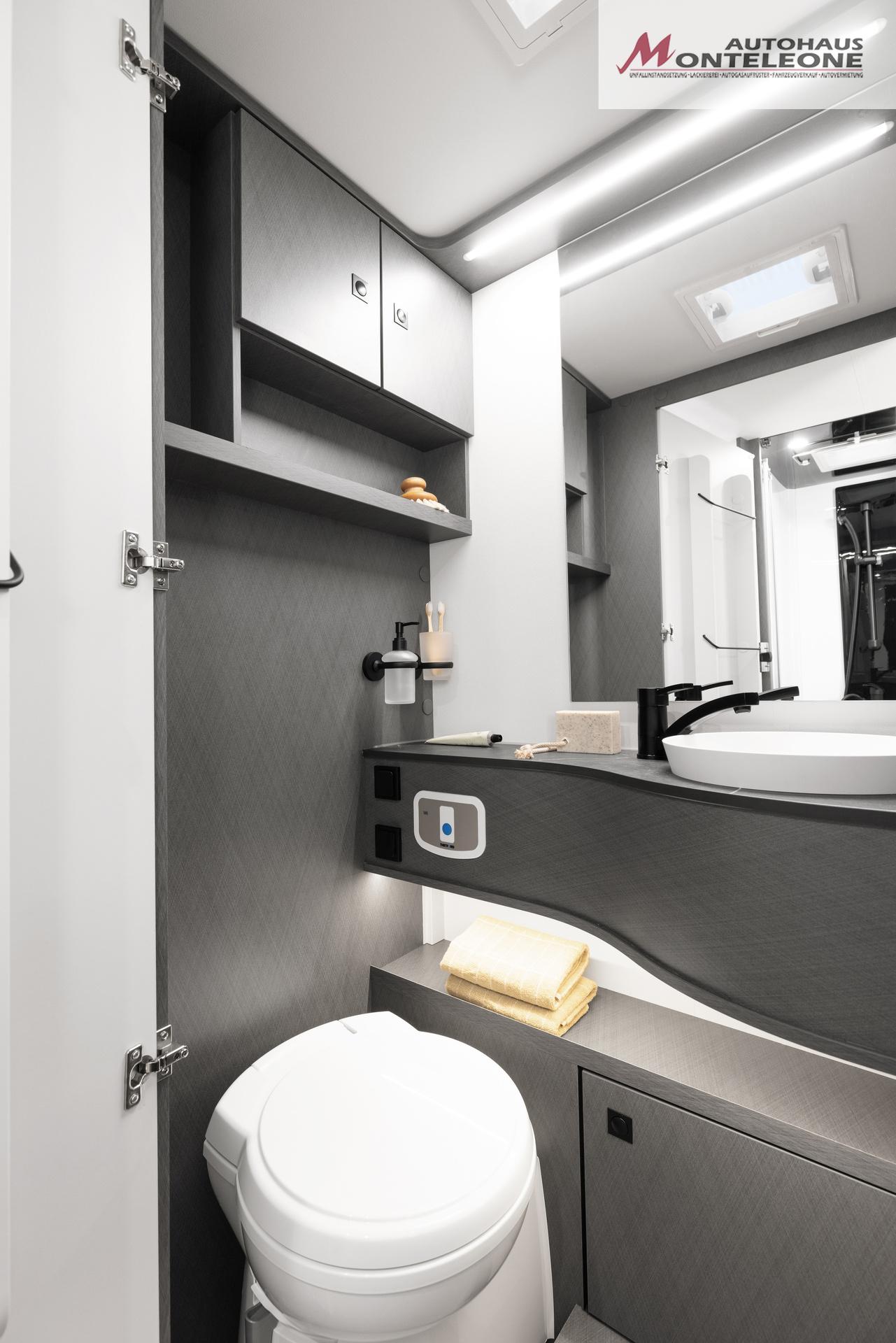 • Kassettentoilette mit elektrischer Pumpe und drehbarem Sitz5) vorhanden