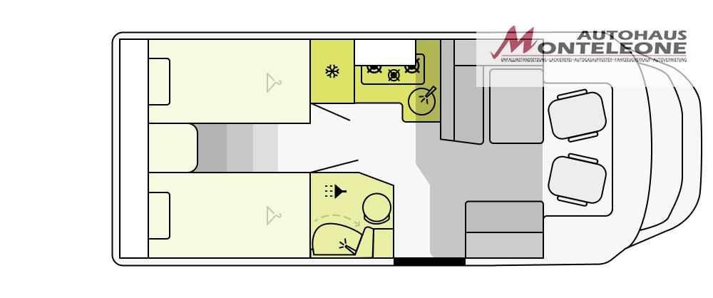 • Frischwassertankkapazität 100 l, Abwassertank 90 l vorhanden
