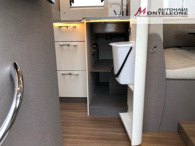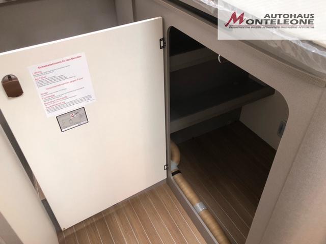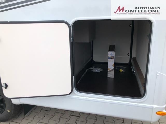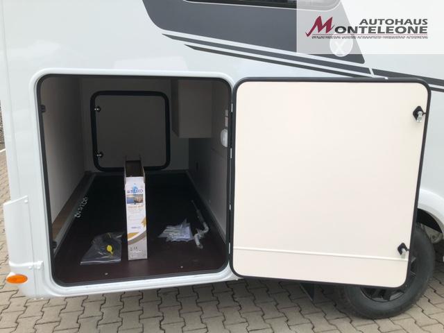 • Großzügige Heckgarage mit Rahmenabsenkung, Verzurrösen und Innenbeleuchtung (modellabhängig) vorhanden