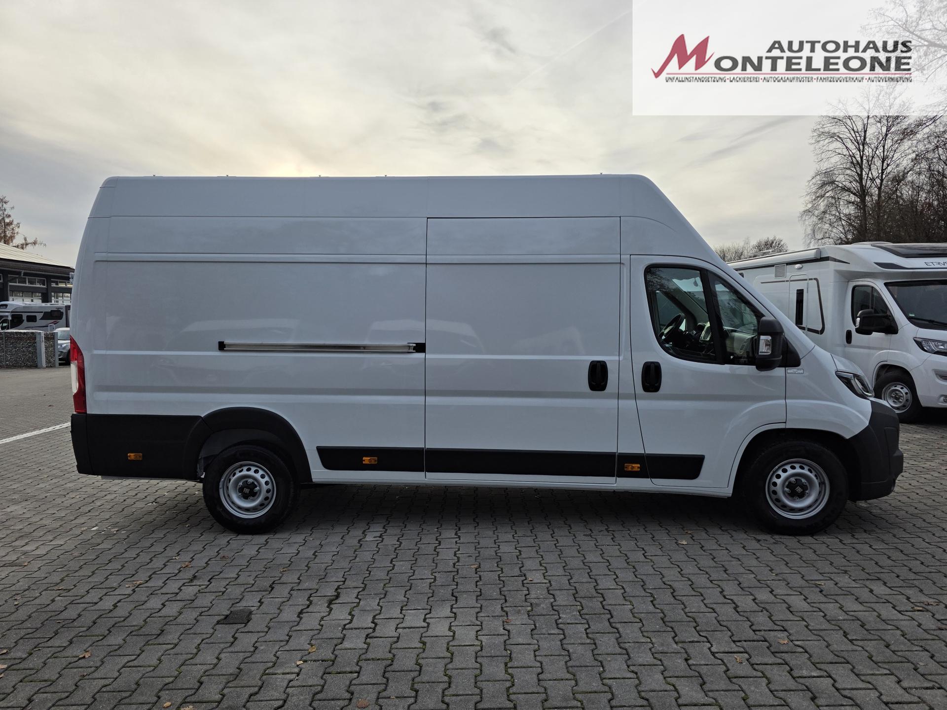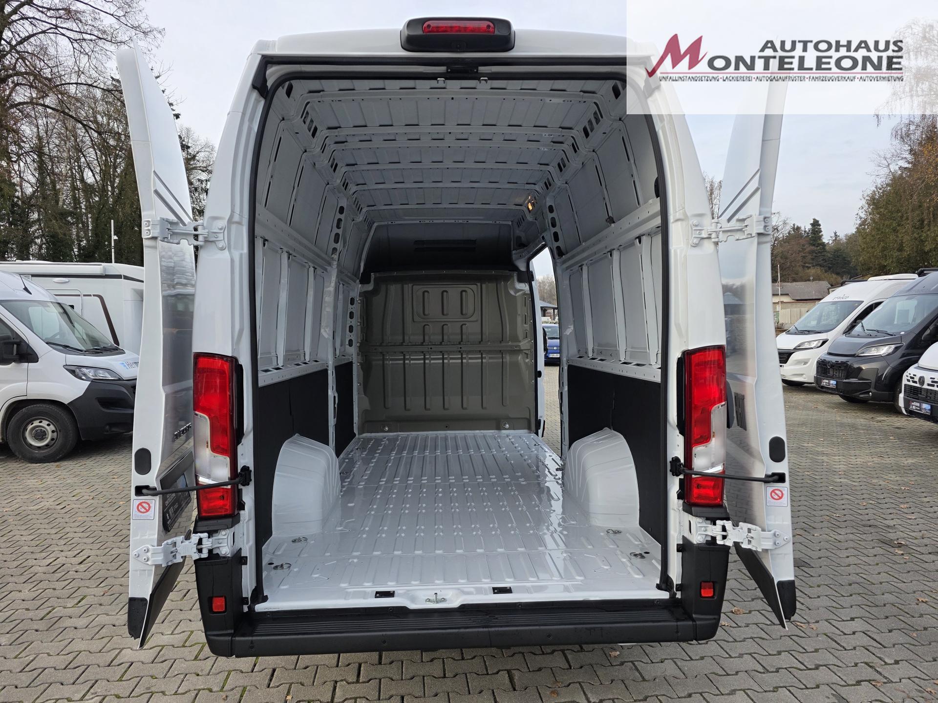132 Mittelarmlehne + Lordosenstütze für Fahrersitz 293 Beifahrerdoppelsitz mit Klapptisch in mittlerer Rückenlehne 149 Stahltrennwand ohne Fenster 041 Elektrisch verstell- und beheizbare Außenspiegel 316 Rückfahrkamera 5F8 Eletronische Stabilitätskontrolle: Seitenwindassistent / Anhängerstabilitätskontrolle / Post Collision Braking Überschlagsvermeidung / Antischlupfregelung (ASR) / Hydraulischer Bremsassistent (HBA) Berganfahrhilfe / Adaptive Lastkontrolle (LAC) Sicherheits-kit: Notbremsassistent (Fußgänger- und Radfahrererkennung) / Spurhalteassistent Verkehrsschilderkennung / Müdigkeitswarner / Intelligenter Geschwindigkeitsassistent 416 Cruise Control / Tempomat 508 Einparkhilfe hinten 01P Akustisches Warnsignal für Fußgänger (Rückfahrwarner) 502 Beifahrerairbag (für Beifahrerdoppelsitz) 077 Doppelblattfeder an der Hinterachse 835 Ablagefach im Dach 619 Heckflügeltüren mit 260° Öffnung 4DH Paket "Ersatzrad & Halterung" (980,786) 980 · Inhalt Paket: Vollwertiges Ersatzrad inkl. Ersatzradhalterung 786 · Inhalt Paket: Ersatzradhalterung 38C Paket "Visibility Plus"(051,LPZ,9WE) 051 · Inhalt Paket: Regen- und Lichtsensor LPZ · Inhalt Paket: Nebelscheinwerfer mit statischem Kurvenlicht 9WE · Inhalt Paket: Voll-LED-Scheinwerfer AWA Paket "Techno Plus" (2PZ,140,RS3,RFX,2QF)2PZ · Inhalt Paket: Uconnect 10" Infotainment-System 140 · Inhalt Paket: Automat. Einzonen Klimaanl. m. Pollenfilter u. Außentemperaturanzeige RS3 · Inhalt Paket: USB Schnittstelle am Armaturenbrett (statt Raucherpaket) RFX · Inhalt Paket: Smartphone Ladestation (kabellos) i.V.m Opt. 140 autom. Klima 2QF · Inhalt Paket: Volldigitales Kombiinstrument CA6 Laderaummaße lt. Herstellerangaben: 4070 mm lang / 1870 mm breit / 1422 mm breit zwischen den Radkästen / 2172 mm hoch