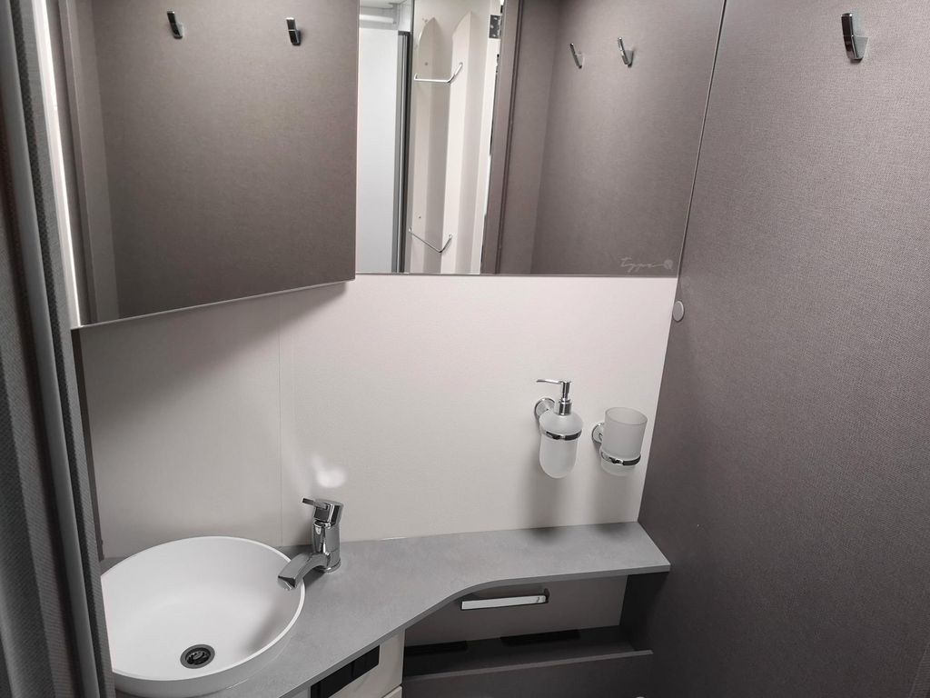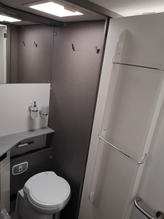 - Komfort - Paket Integrierter bestehend aus:4)Panoramadachhaube über Sitzgruppe, Klarglasdachhaube 40x40, Duschraumverkleidung, Spiegel mit indirekter Beleuchtung und Garderobenhaken, Holzlattenrost in der Dusche, Pilotensitze inkl. Wohnraumbezüge, zusätzl. Steckdose im Dachschrank über dem Küchenblock, Steckdose in der Garage, Fahrerhaustüre links, zus. Klarglas-Dachhaube 40x40 über dem Hubbett