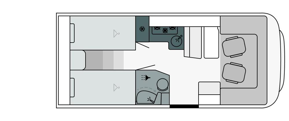 - Frischwassertankkapazität 110 l, Abwassertank 90 l