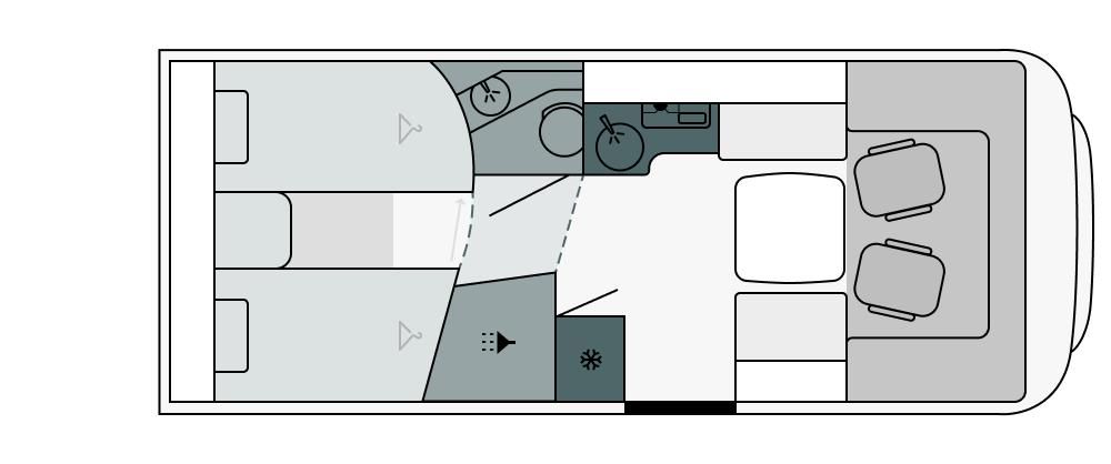 - Frischwassertankkapazität 110 l, Abwassertank 90 l